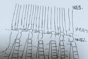 長い長い棒に、算盤の駒形状のモノを差し込んでいく存在が見えました。