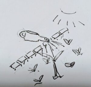 処方してくれた薬瓶を大切に胸に抱えて、持って帰る人たちの絵でした。。