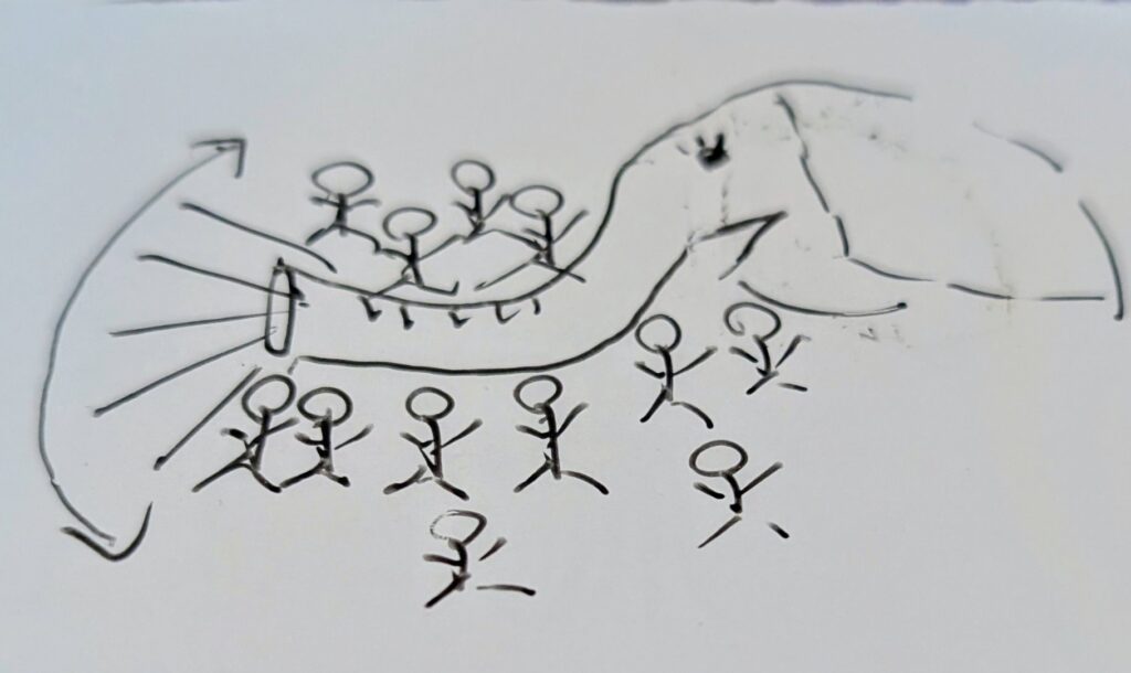 象がバキュームしながら、同時に人間達の頭を鼻で撫でまくっている(笑)。。みたいな映像でした。