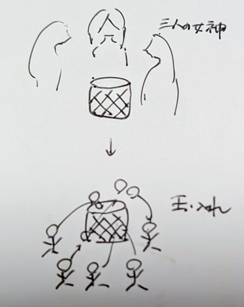 人間がその籠に球を投げ込んでいく。。そんな映像でした。(紅白の玉入れ合戦みたいな感じ。。)