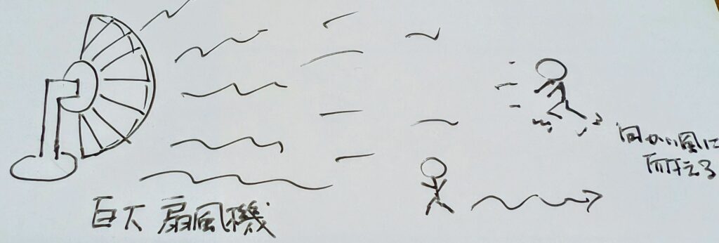 今までの在り方を維持したい人は向かい風を受ける事になり、一歩も進めない様子でした。