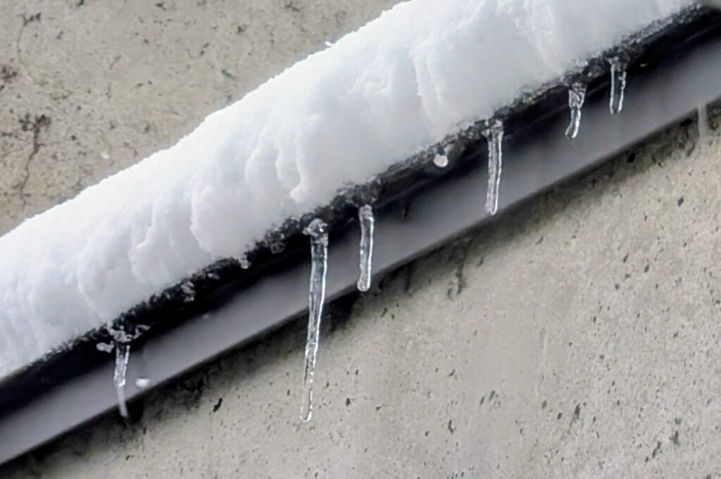マンションに小さなつららが出来ていました。