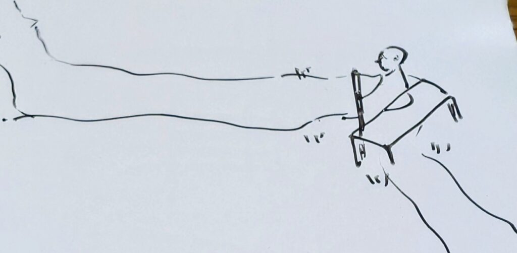 ふと思い立ち、杖を強く握りしめて歩き出そうとしている。。そんな絵でした。