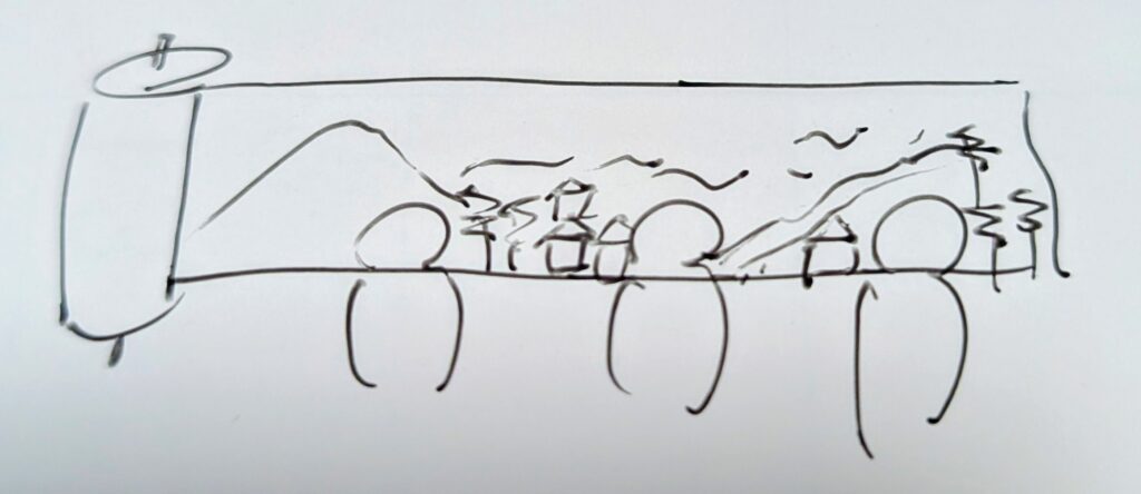 さて、アセンション完了後の日本の風景が描かれた巻物を見せて頂きました。