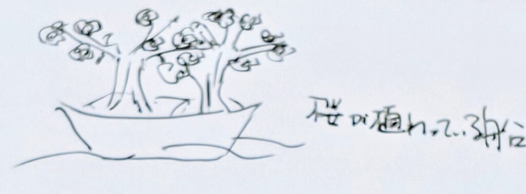 高次の存在が、桜満開の船をどんどん川に流す様子でした。